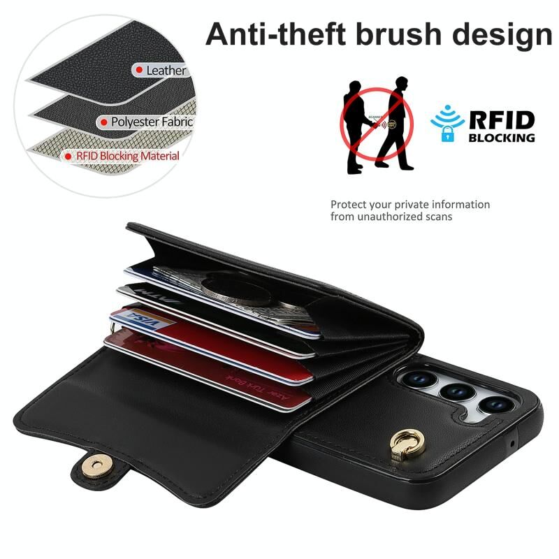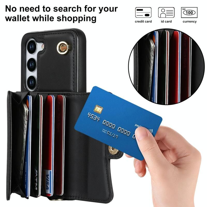 Για Samsung Galaxy S23 5G RFID Slot κάρτα δερμάτινη θήκη τηλεφώνου με μακρύ κορδόνι (Μαύρο)