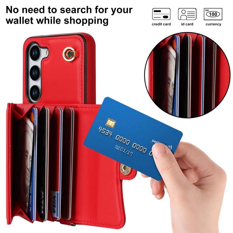 Για Samsung Galaxy S23+ 5G RFID Slot κάρτα δερμάτινη θήκη τηλεφώνου με μακρύ κορδόνι (κόκκινο)