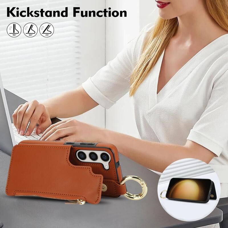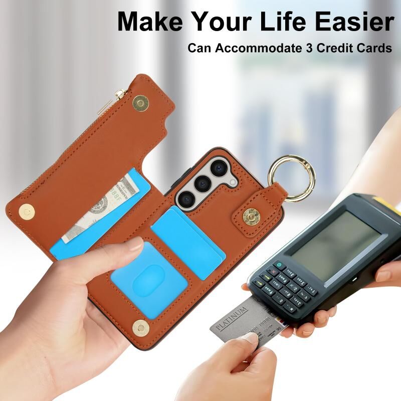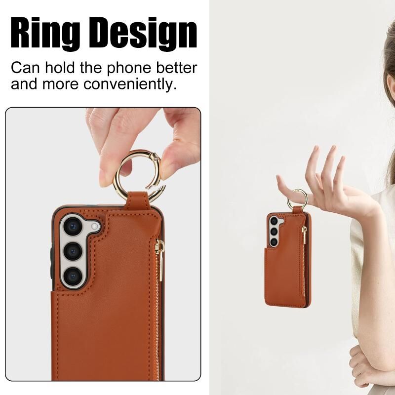 Για Samsung Galaxy S23 5G RFlD 5G αντικλεπτική διπλή πόρπη δαχτυλίδι φερμουάρ τηλέφωνο υπόθεση κάρτα (καφέ)