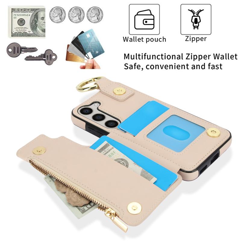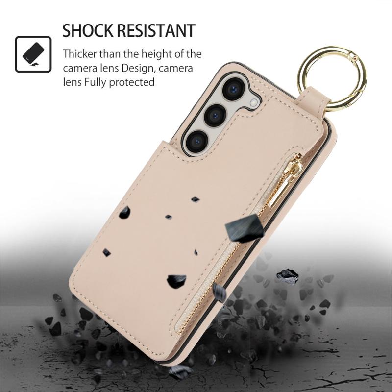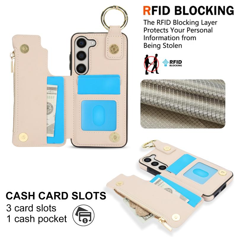 For Samsung Galaxy S23 5G RFlD Anti-theft Double Buckle Ring Zipper Card Phone Case(White)