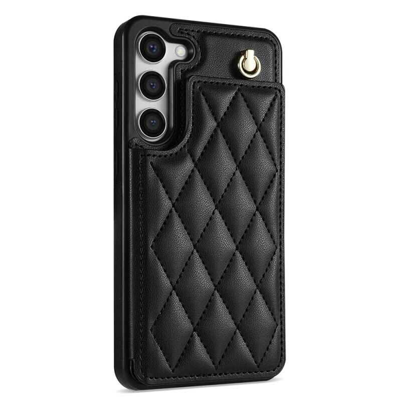 Για το Samsung Galaxy S23 + 5G Rhombic Διπλή Πόρπη υποδοχές κάρτας τηλέφωνο υπόθεση με κορδόνι (Μαύρο)