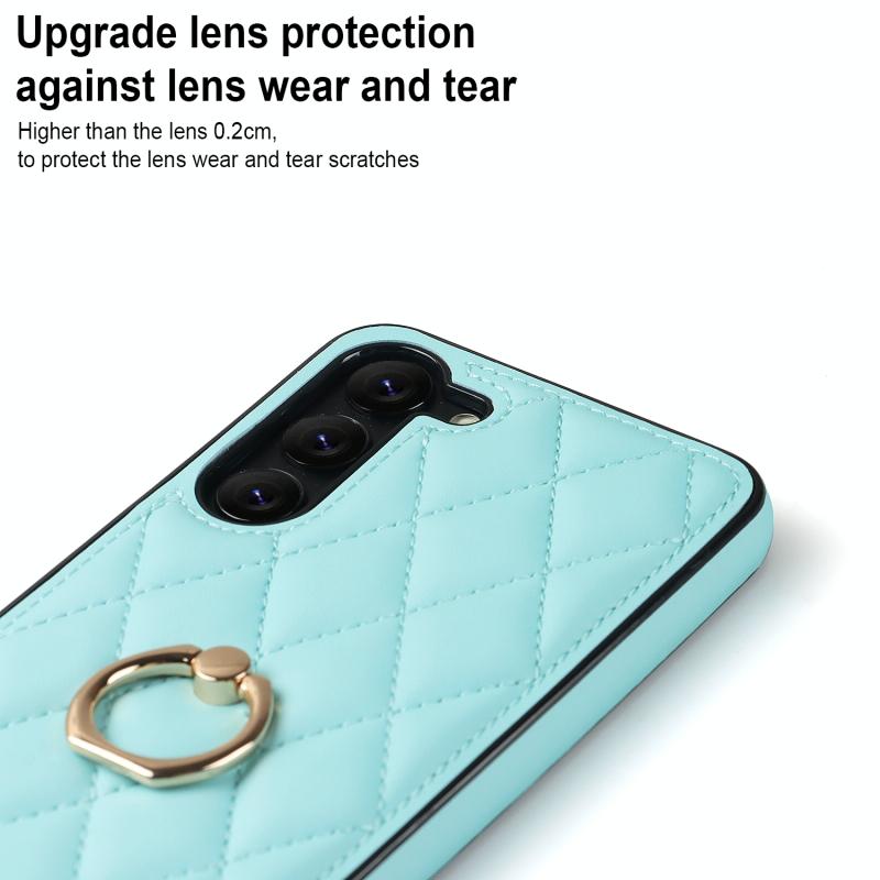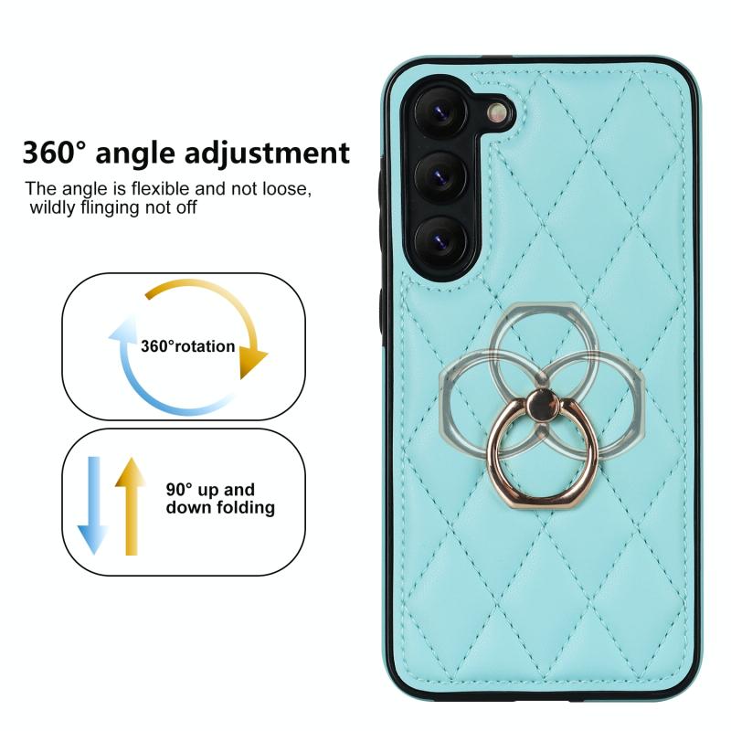 Θήκη κινητού τηλεφώνου Samsung Galaxy S23 5G από δερματίνη με ρόμβους και δακτύλιο στήριξης (Μπλε)