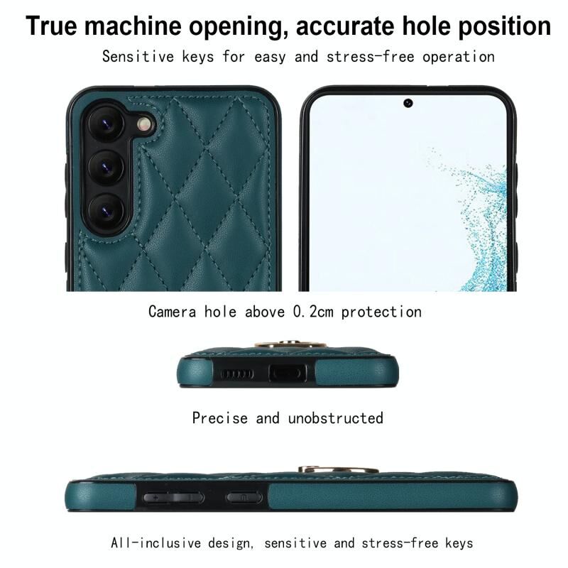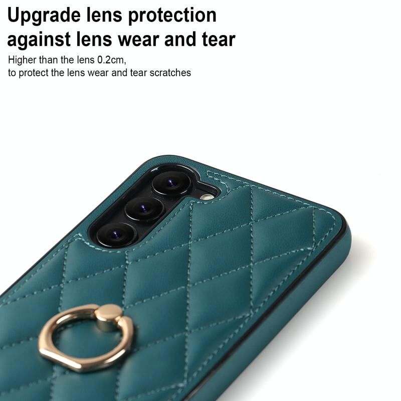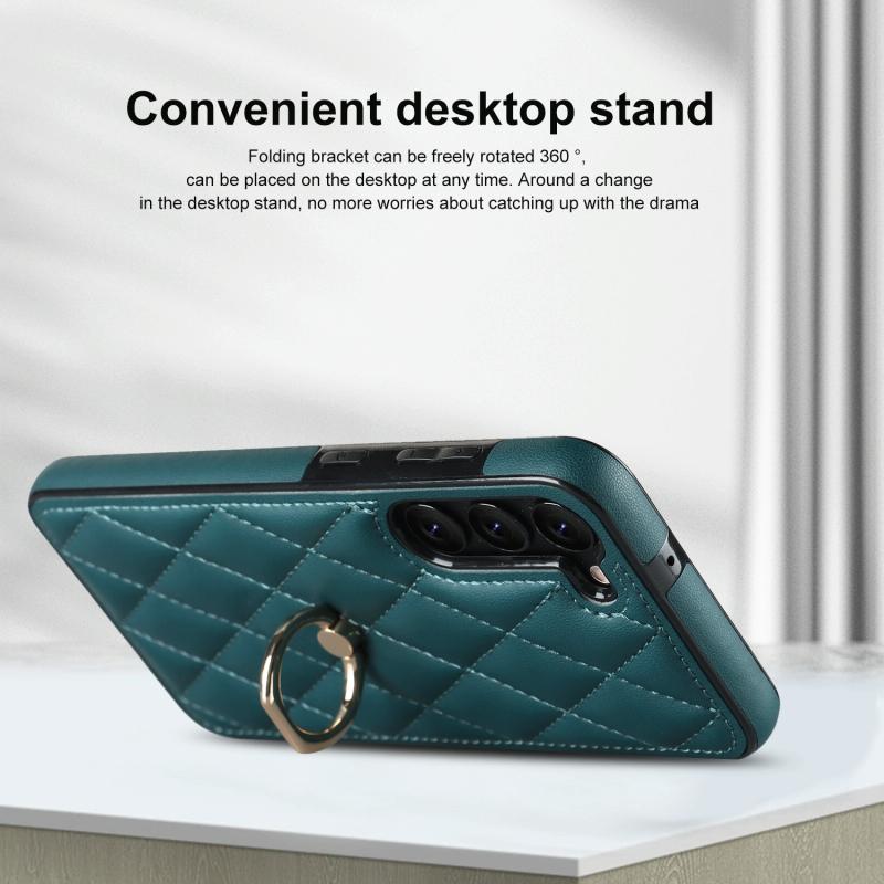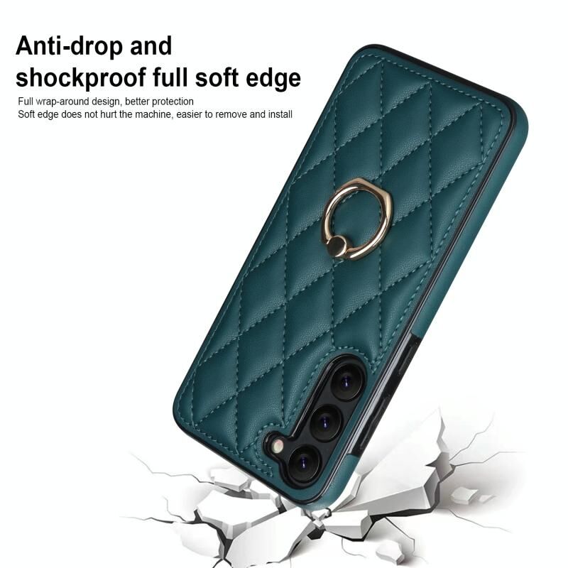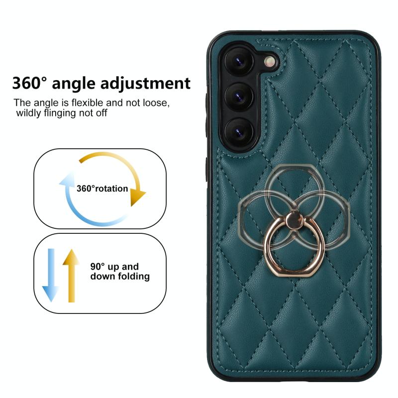 Θήκη κινητού τηλεφώνου Samsung Galaxy S23+ 5G από δερματίνη PU με ρόμβους και δακτύλιο στήριξης (Μωβ)