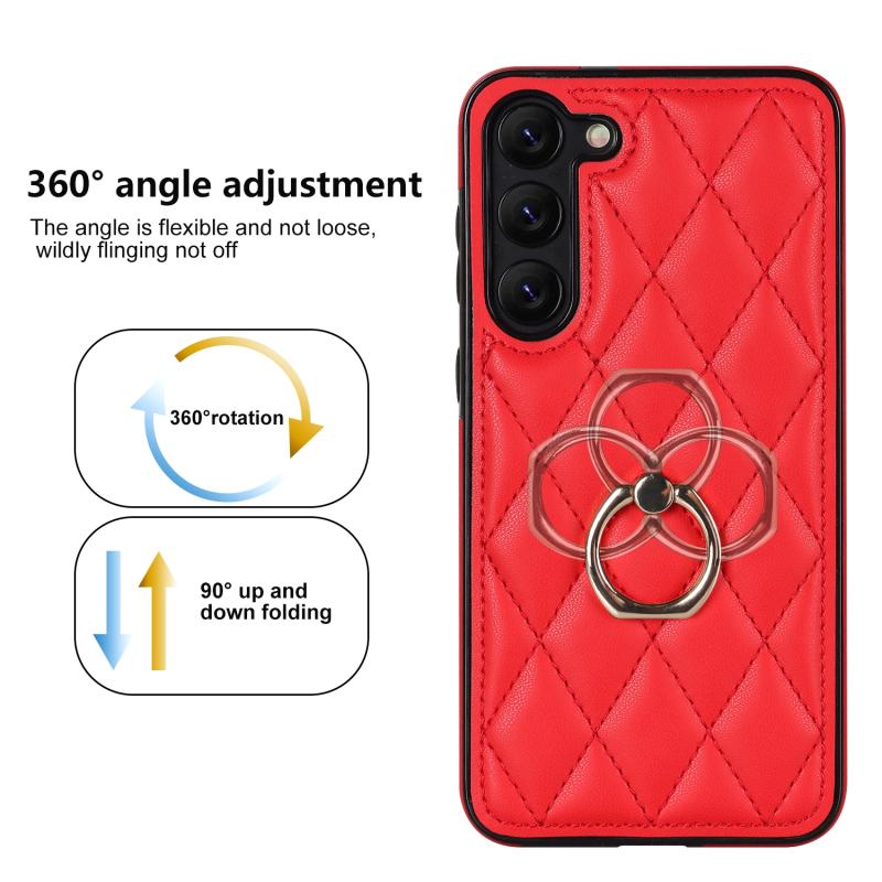 Θήκη τηλεφώνου Samsung Galaxy S23+ 5G από δερματίνη PU με ρόμβους και δακτύλιο στήριξης (Κόκκινο)