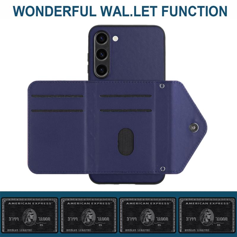 For Samsung Galaxy S23 5G Rhombic Texture Card Bag RFID Phone Case with Long Lanyard(Blue)