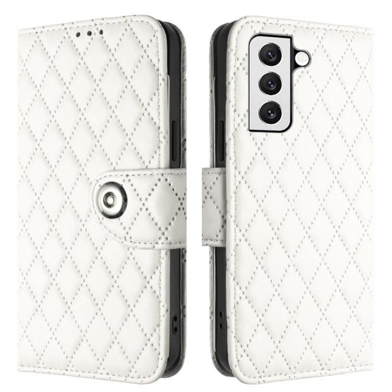 Για Samsung Galaxy S23 5G Rhombic Texture Flip δερμάτινη θήκη τηλεφώνου με κορδόνι (λευκό)