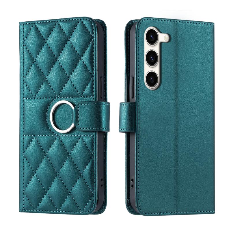 For Samsung Galaxy S23 5G Ring Buckle Rhombic Leather Phone Case(Green)