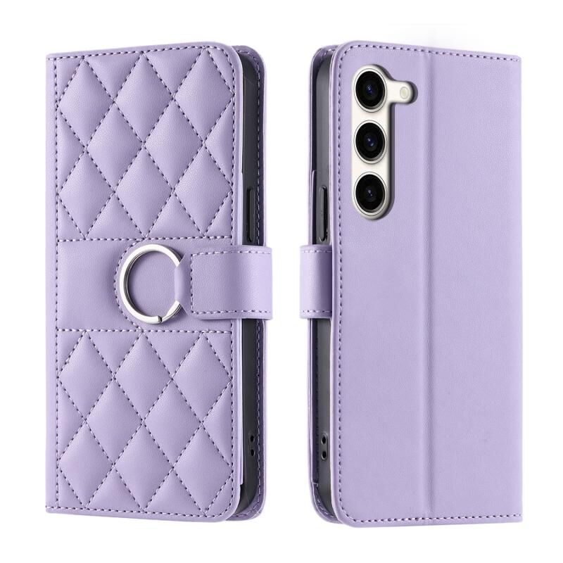 For Samsung Galaxy S23+ 5G Ring Buckle Rhombic Leather Phone Case(Purple)