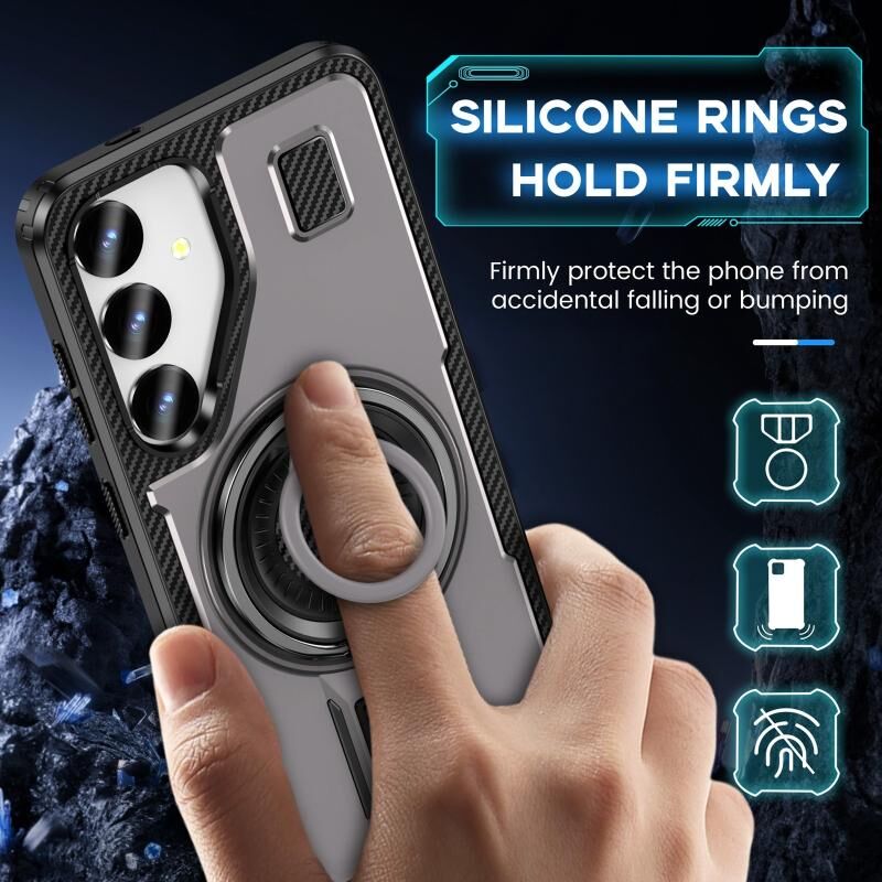 3. Δακτύλιος και βάση σιλικόνης: Όχι μόνο βασική προστασία, η θήκη θα λειτουργήσει ως λαβή τηλεφώνου για να κρατάτε σταθερά το τηλέφωνό σας. Και ως βάση τηλεφώνου που επιτρέπει τη λειτουργία πορτραίτου ή οριζοντίου σε πολλές γωνίες.