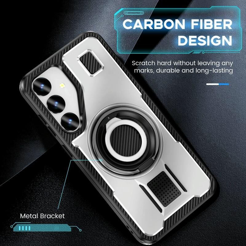 Για Samsung Galaxy S23 + 5G δαχτυλίδι κάτοχος ανθρακονήματα PC υβριδικό TPU τηλέφωνο υπόθεση (λευκό)