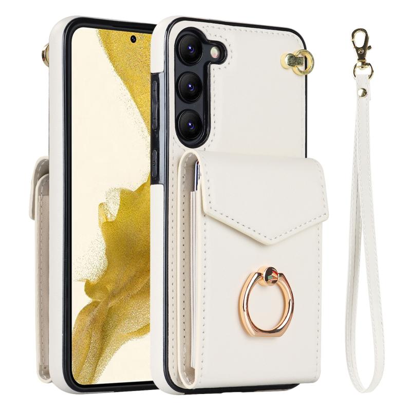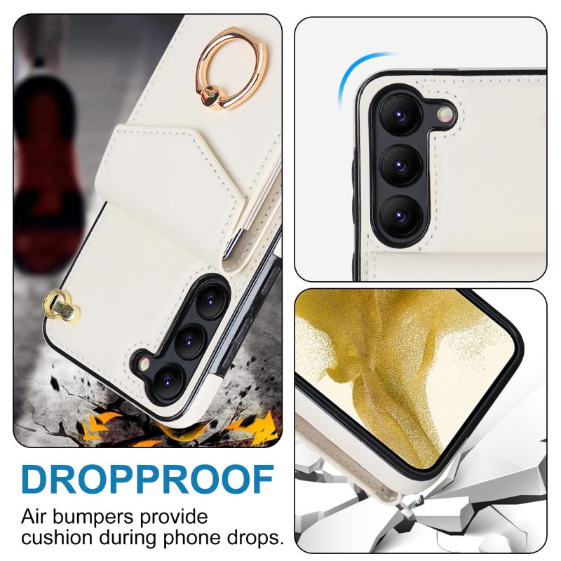 Θήκη κινητού τηλεφώνου Samsung Galaxy S23 5G με δακτύλιο στήριξης και θήκη για κάρτες RFID (Μπεζ)