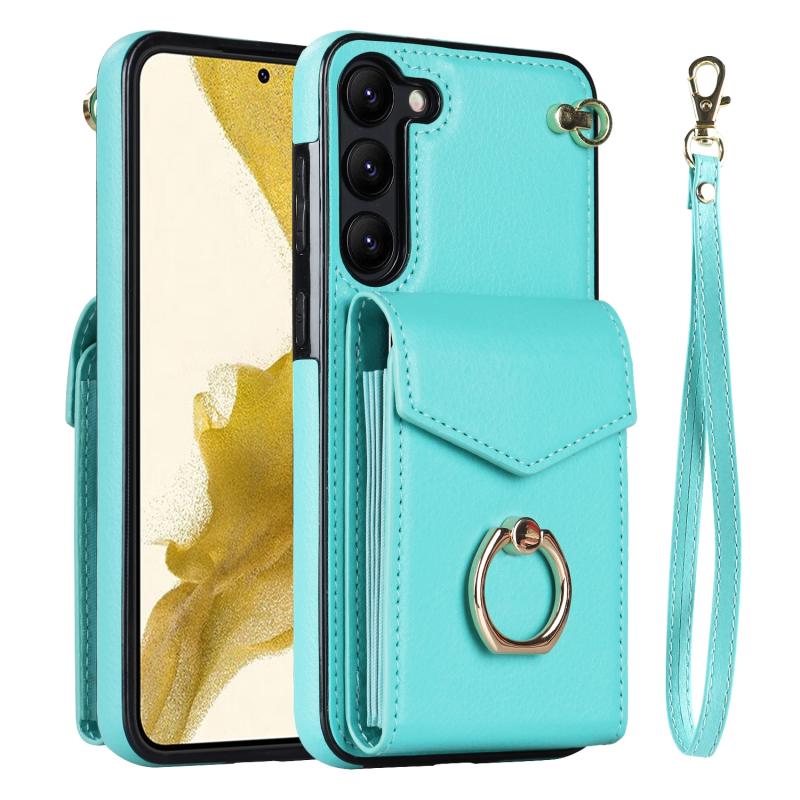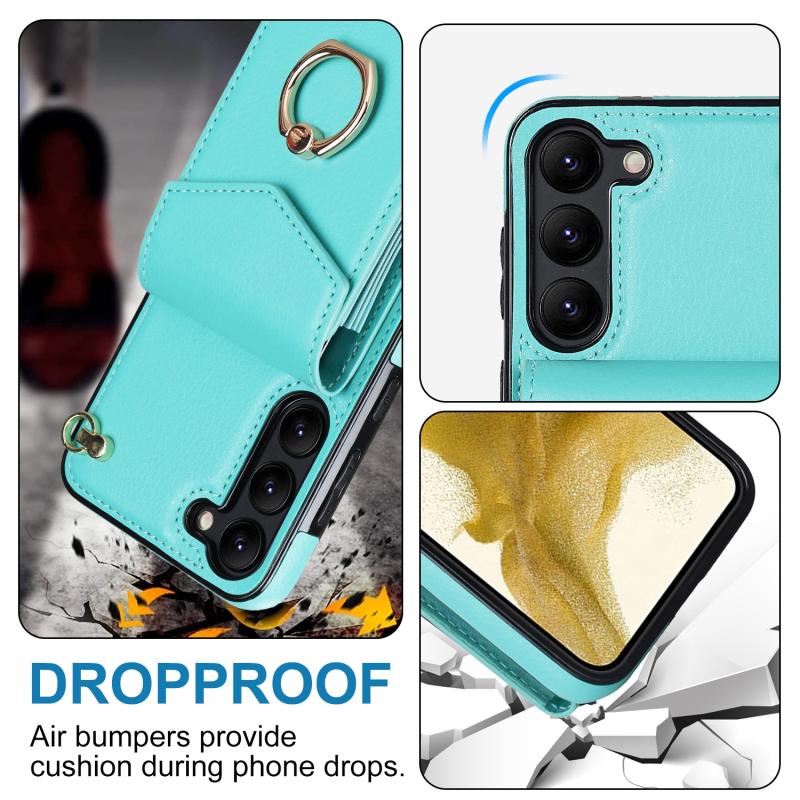 Θήκη κινητού τηλεφώνου για Samsung Galaxy S23 5G με δακτύλιο στήριξης και θήκη για κάρτες RFID (Μέντα Πράσινο)