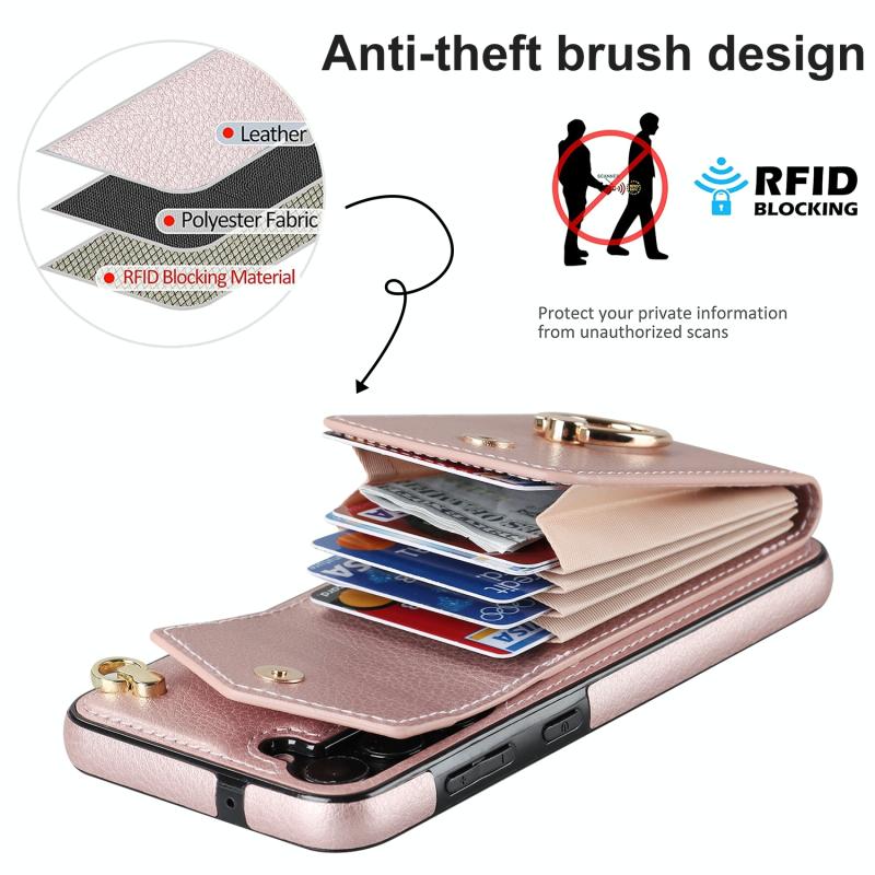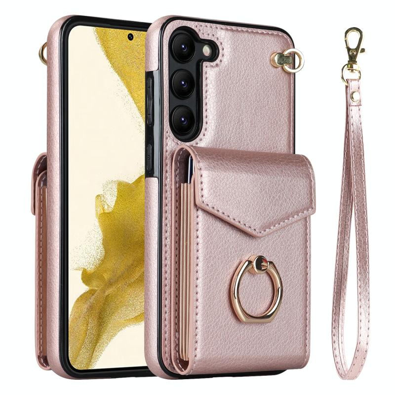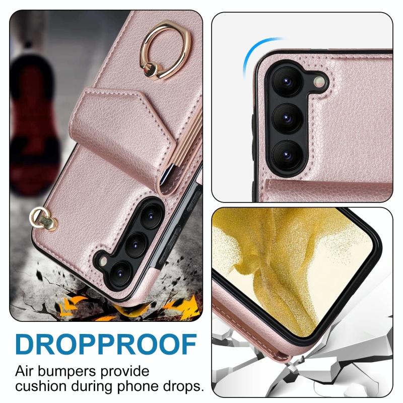 Θήκη κινητού τηλεφώνου με δακτύλιο και θήκη καρτών RFID για Samsung Galaxy S23+ 5G (Ροζ χρυσός)