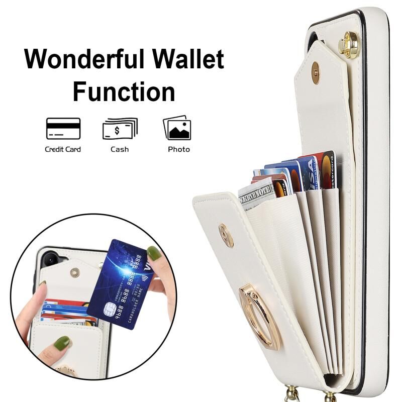 Για Samsung Galaxy S23 5G δαχτυλίδι κάτοχος RFID κάρτα Slot υπόθεση τηλεφώνου με μακρύ κορδόνι (Μπεζ)