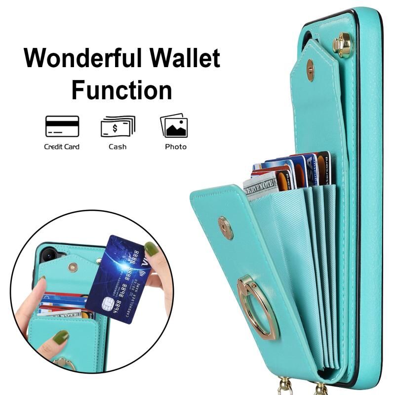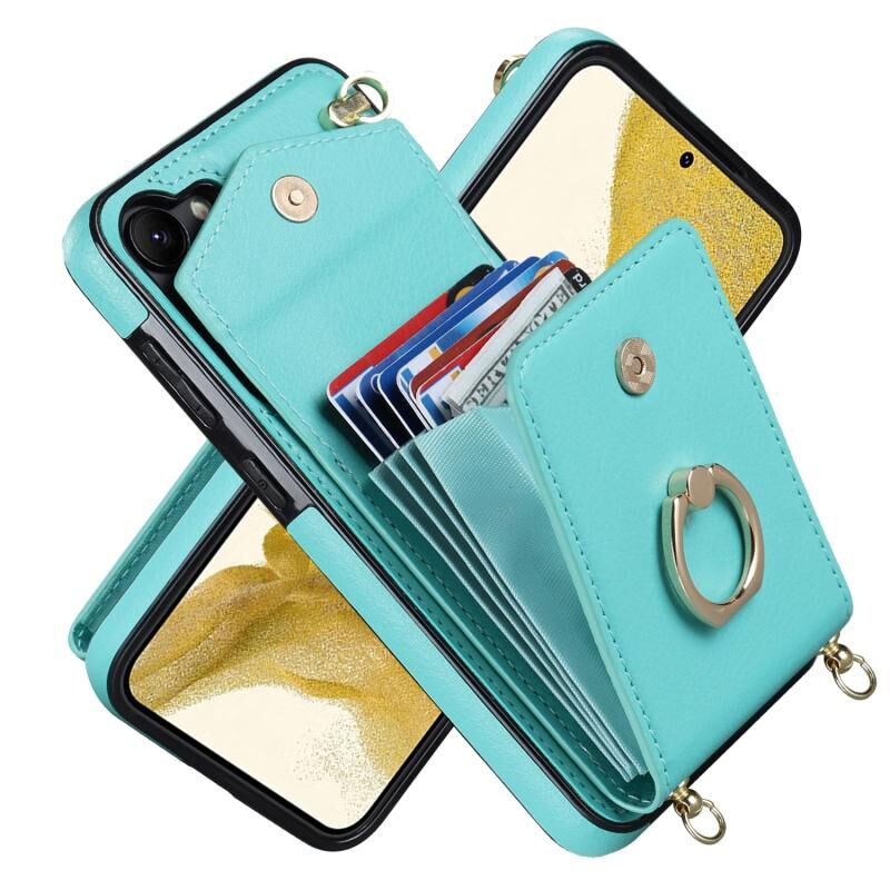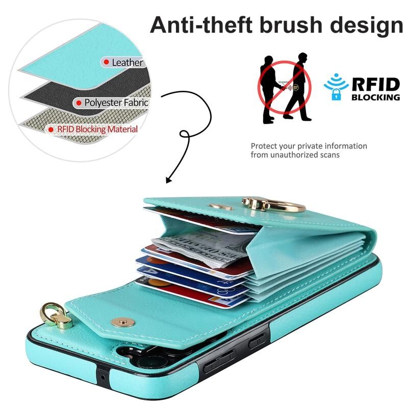 Για Samsung Galaxy S23 5G δαχτυλίδι κάτοχος RFID κάρτα υποδοχή υπόθεση τηλεφώνου με μακρύ κορδόνι (πράσινο μέντα)