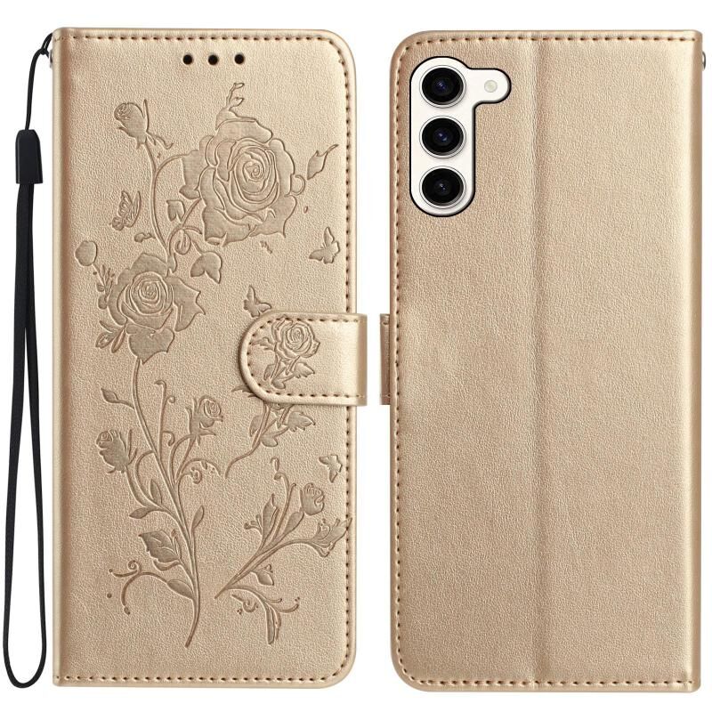 For Samsung Galaxy S23 5G Rose Flower Embossing Pattern Leather Phone Case(Gold)