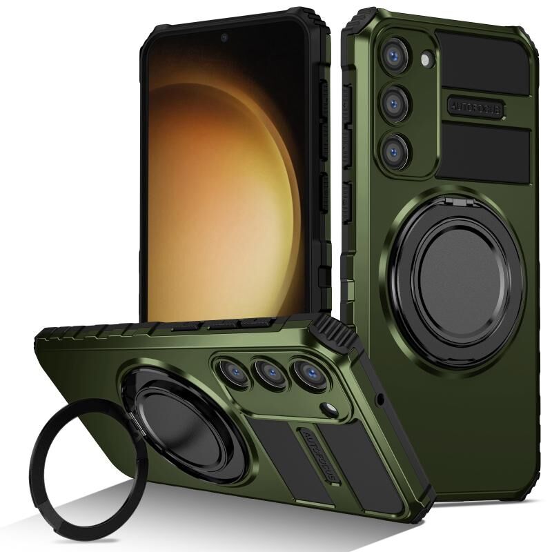 Για Samsung Galaxy S23 5G Περιστρεφόμενη μαγνητική θήκη τηλεφώνου (σκούρο πράσινο)