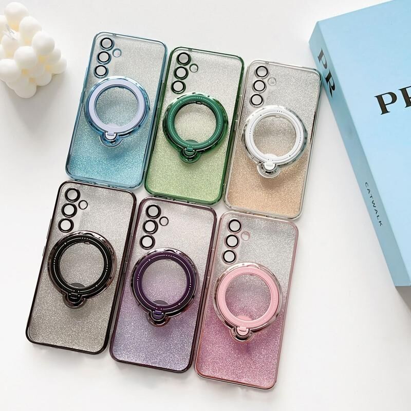 Θήκη κινητού τηλεφώνου Samsung Galaxy S23 5G με περιστρεφόμενη βάση MagSafe, διαφανές TPU με λαμπερό διαβαθμισμένο χρώμα (Ροζ)