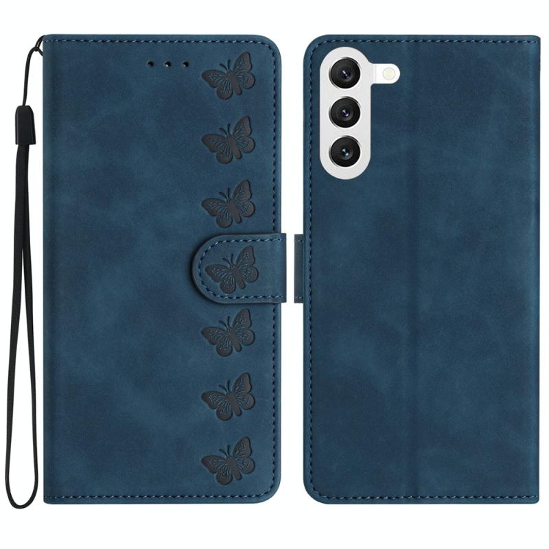 Θήκη τηλεφώνου Samsung Galaxy S23+ 5G Seven Butterflies, δερμάτινη με ανάγλυφο σχέδιο (Μπλε)