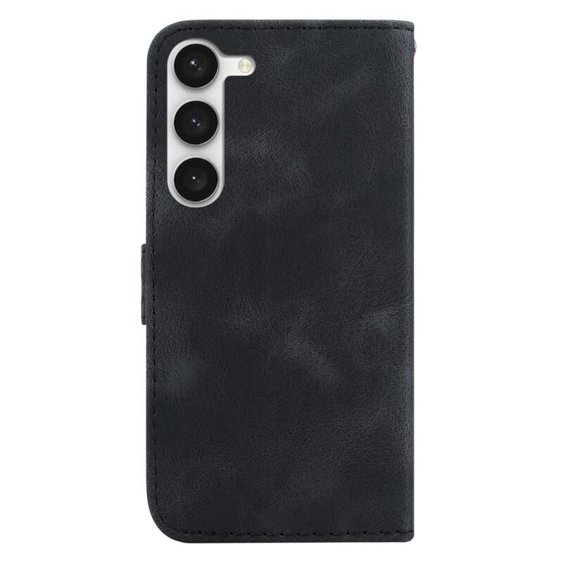 Θήκη τηλεφώνου Samsung Galaxy S23 5G από δέρμα με ανάγλυφο σχέδιο σε σχήμα επτά (Μαύρο)