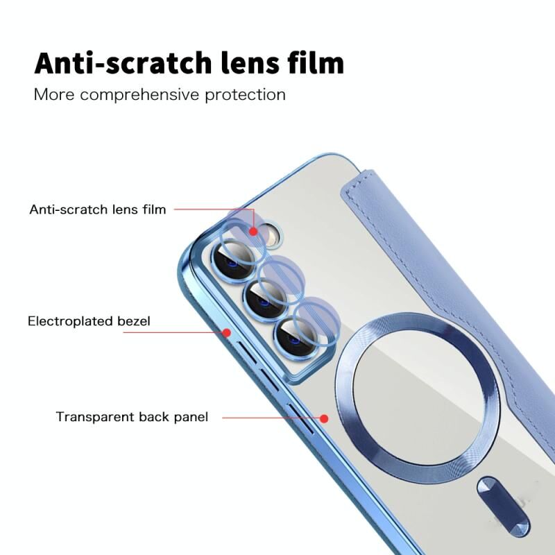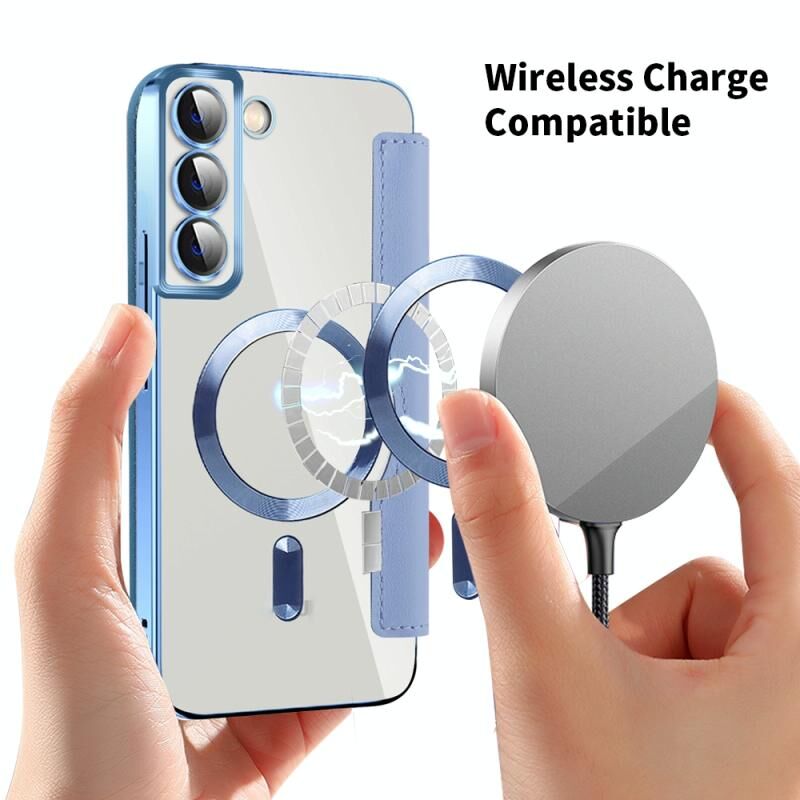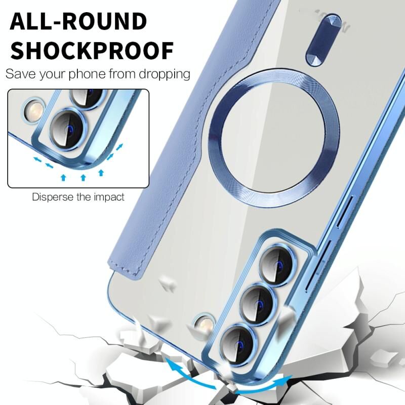 Θήκη τηλεφώνου Samsung Galaxy S23 5G Shield MagSafe RFID Anti-theft από δέρμα με ρόμβους (Σκούρο Μπλε)