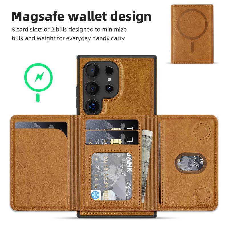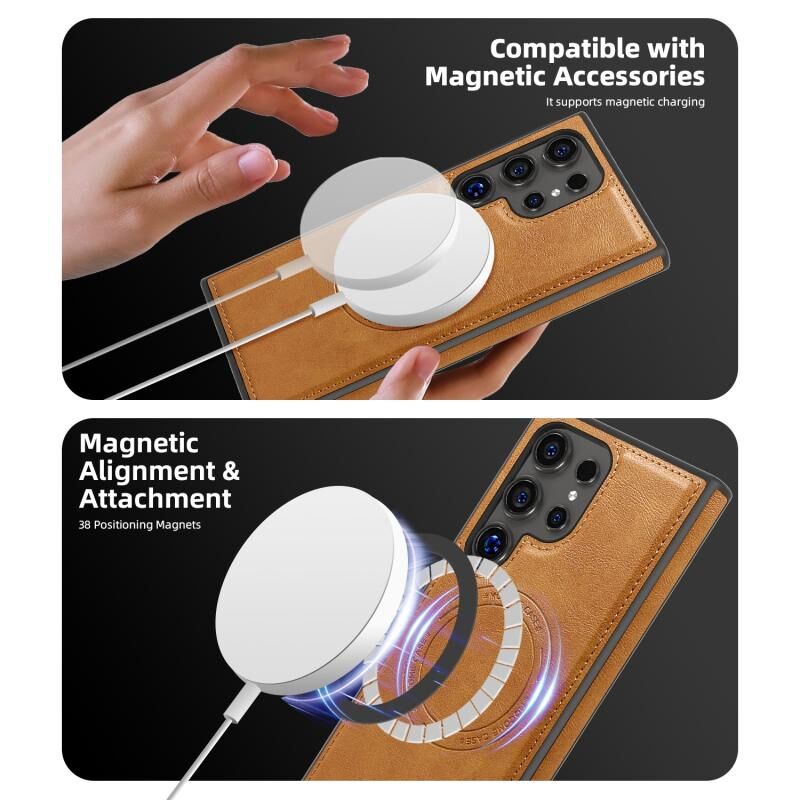 Για Samsung Galaxy S23 5G Θήκη MagSafe με Κάρτες & Λειτουργικότητα Shield (Καφέ)