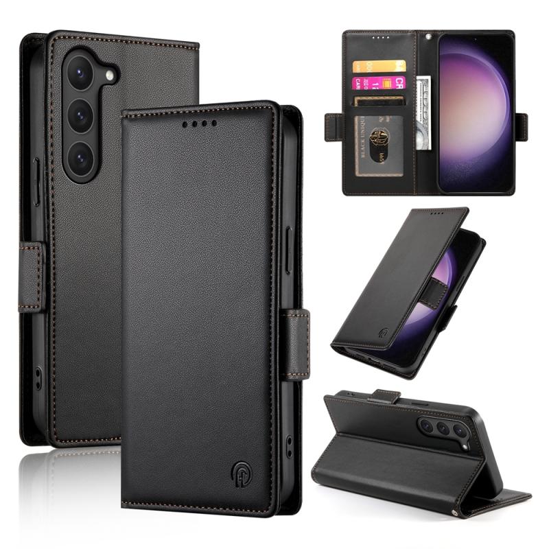 For Samsung Galaxy S23 5G Side Buckle Magnetic Frosted Leather Phone Case(Black)