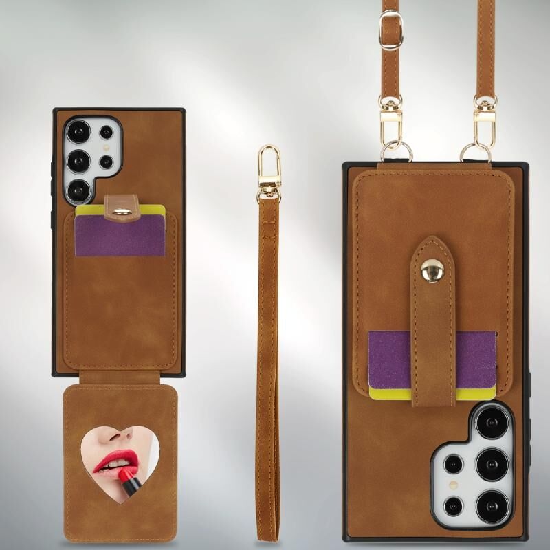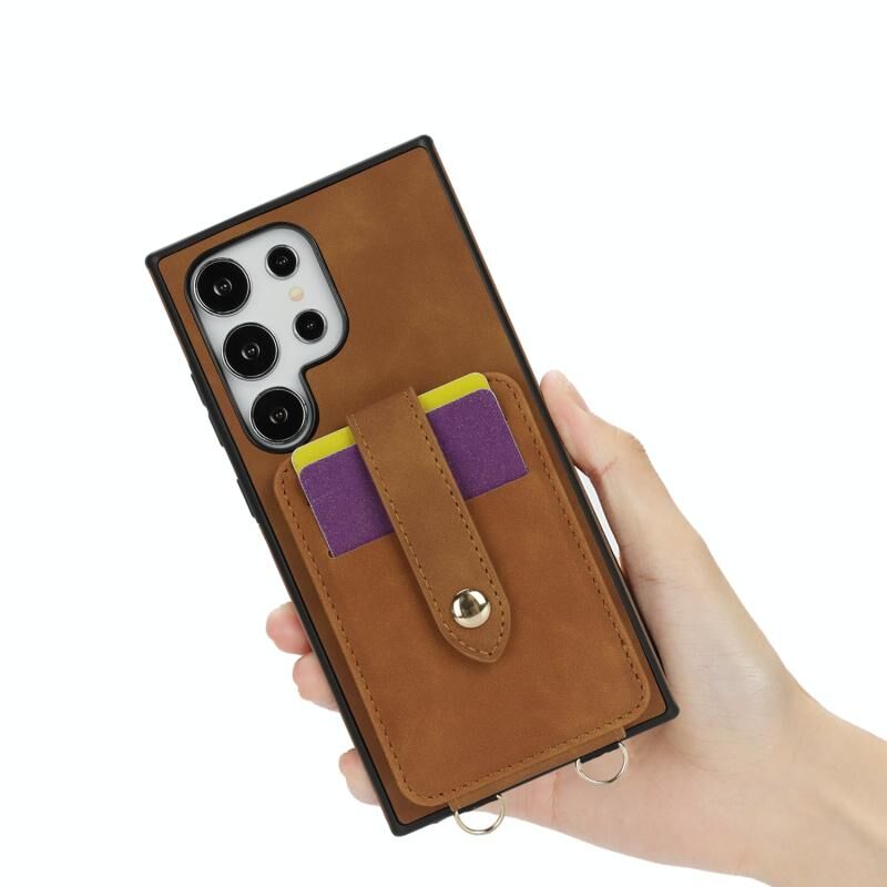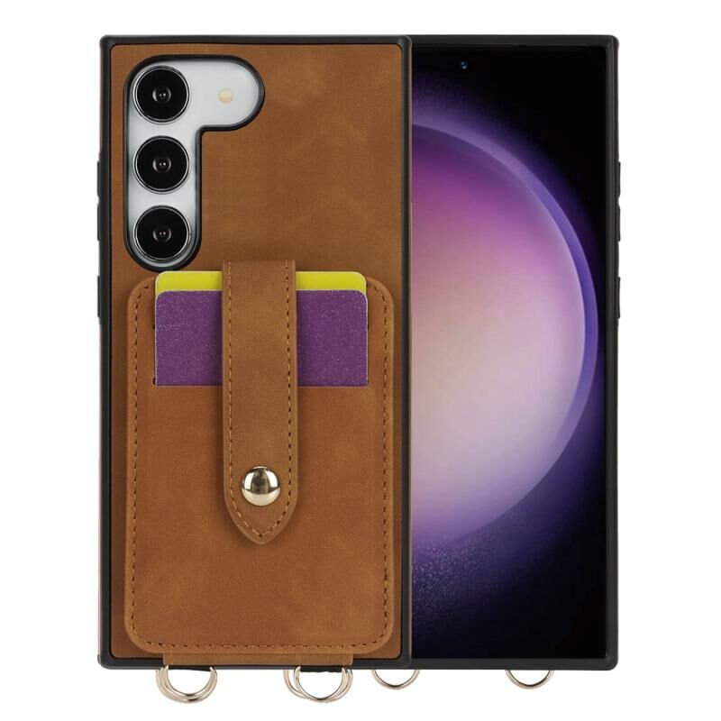 Για Samsung Galaxy S23+ 5G δέρμα κάρτα τσάντα τσάντα Crossbody Lanyard τηλέφωνο υπόθεση (καφέ)