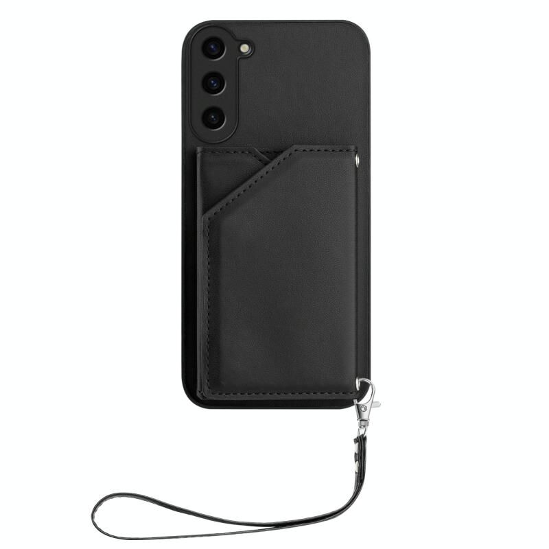 Για Samsung Galaxy S23 + 5G Skin Feel Τέσσερις υποδοχές κάρτας υπόθεση τηλεφώνου με λουράκι καρπού (μαύρο)