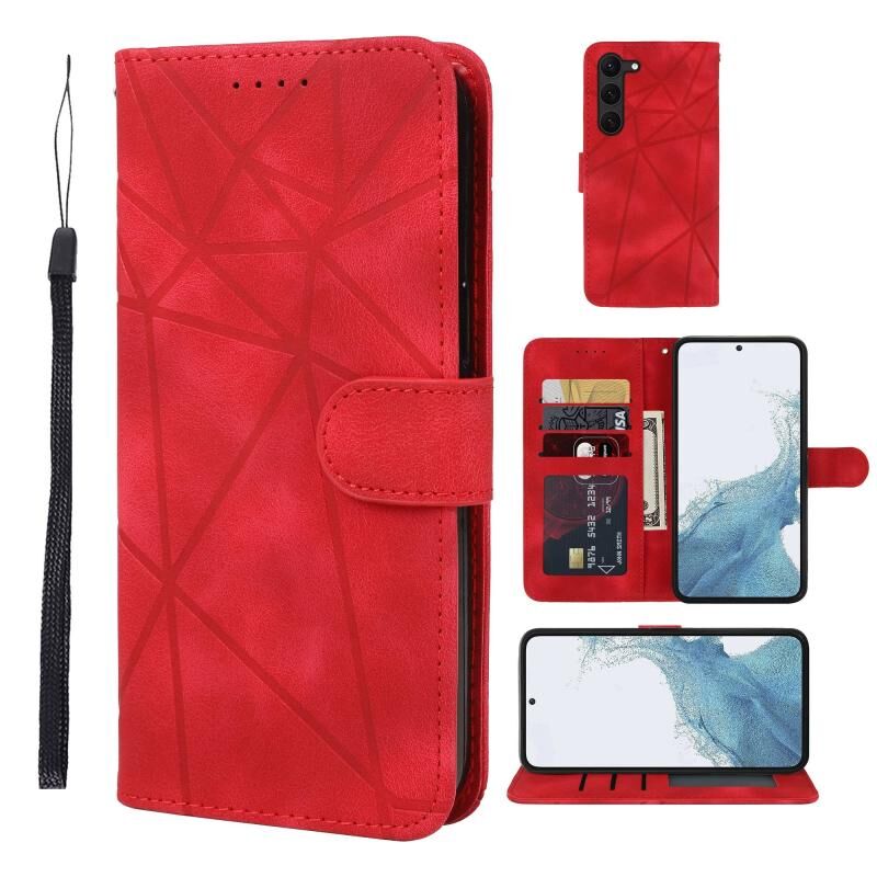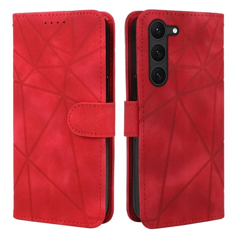 Θήκη τηλεφώνου Samsung Galaxy S23 5G από δέρμα με γεωμετρικά σχέδια και αίσθηση δέρματος (Μαύρο)