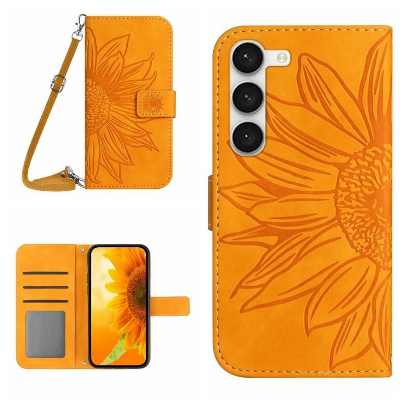 Για το Samsung Galaxy S23 5G δέρμα αίσθηση Sun Flower μοτίβο Flip δέρμα τηλέφωνο υπόθεση με κορδόνι (κίτρινο)