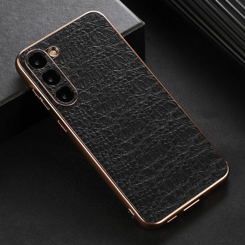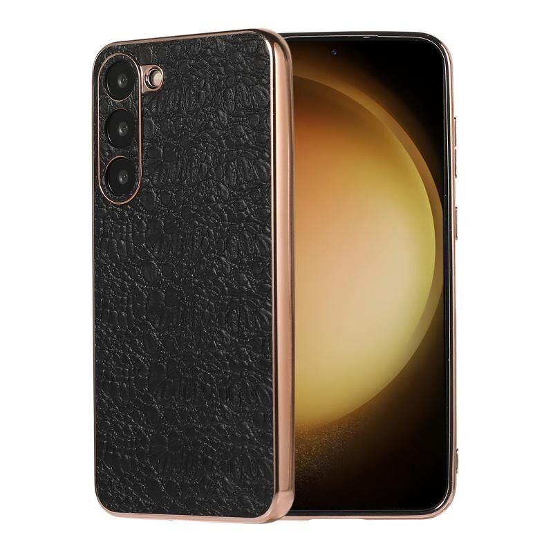 For Samsung Galaxy S23 5G Sky Series Nano Electroplating Genuine Leather Phone Case(Black)