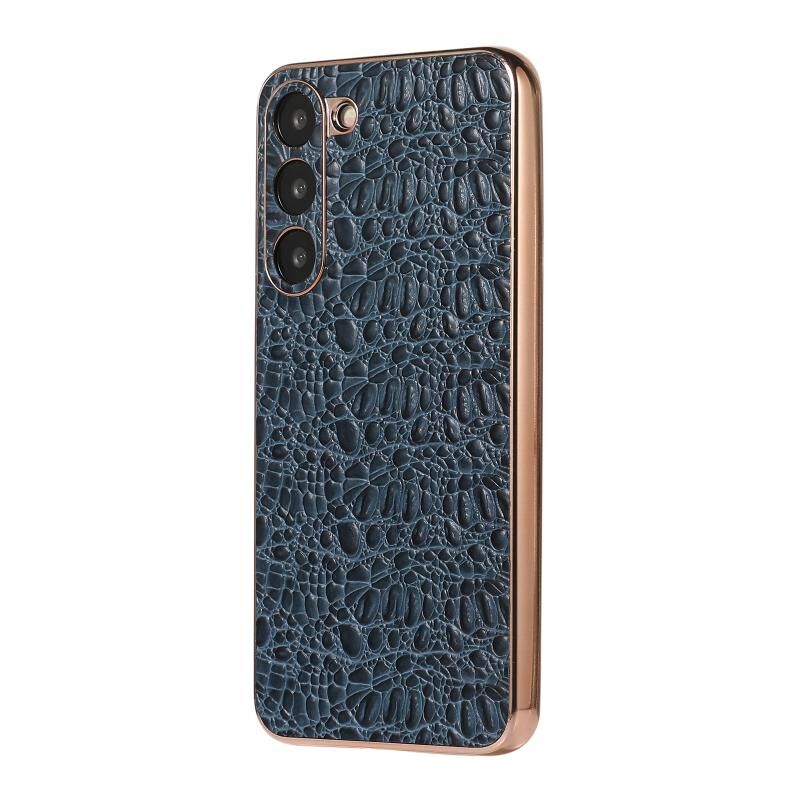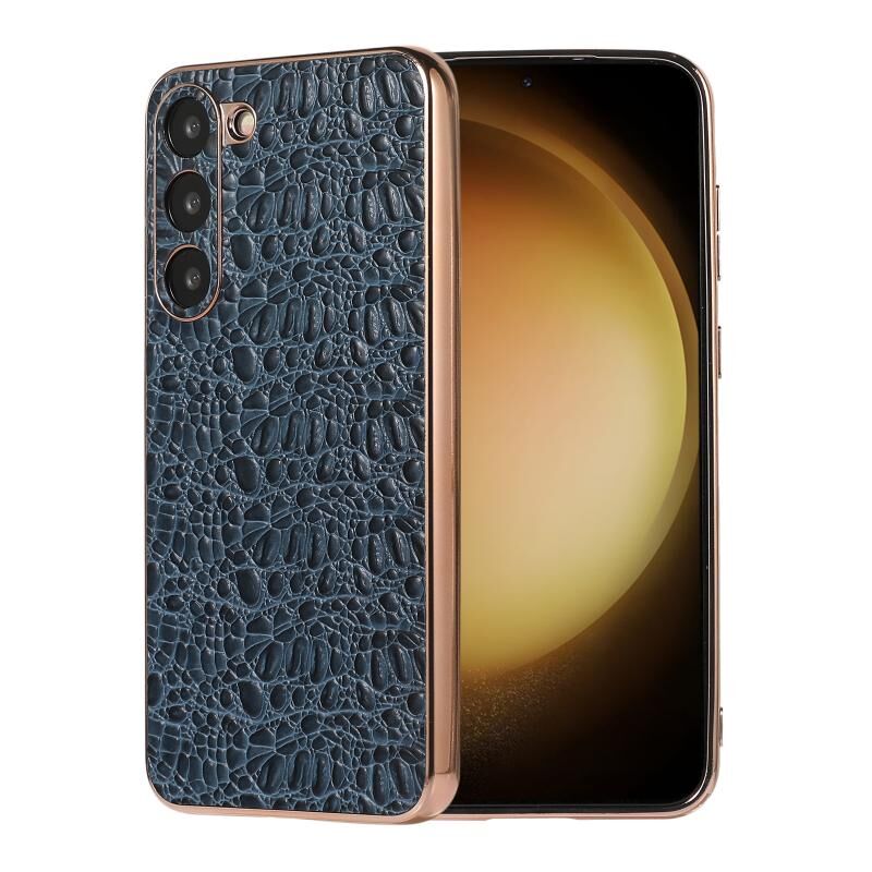 For Samsung Galaxy S23 5G Sky Series Nano Electroplating Genuine Leather Phone Case(Blue)