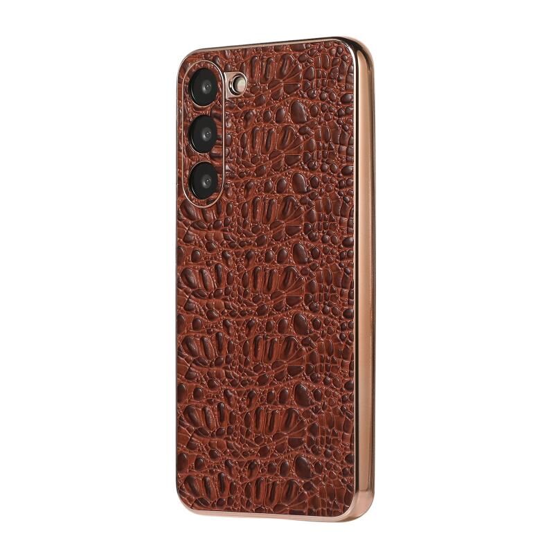 For Samsung Galaxy S23+ 5G Sky Series Nano Electroplating Genuine Leather Phone Case(Coffee)