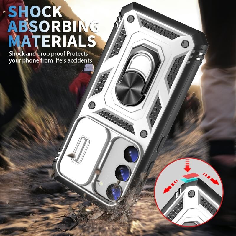 Θήκη κινητού τηλεφώνου για Samsung Galaxy S23+ 5G με ολισθαίνουσα κάλυψη κάμερας, TPU + PC (Λευκό+Μαύρο)