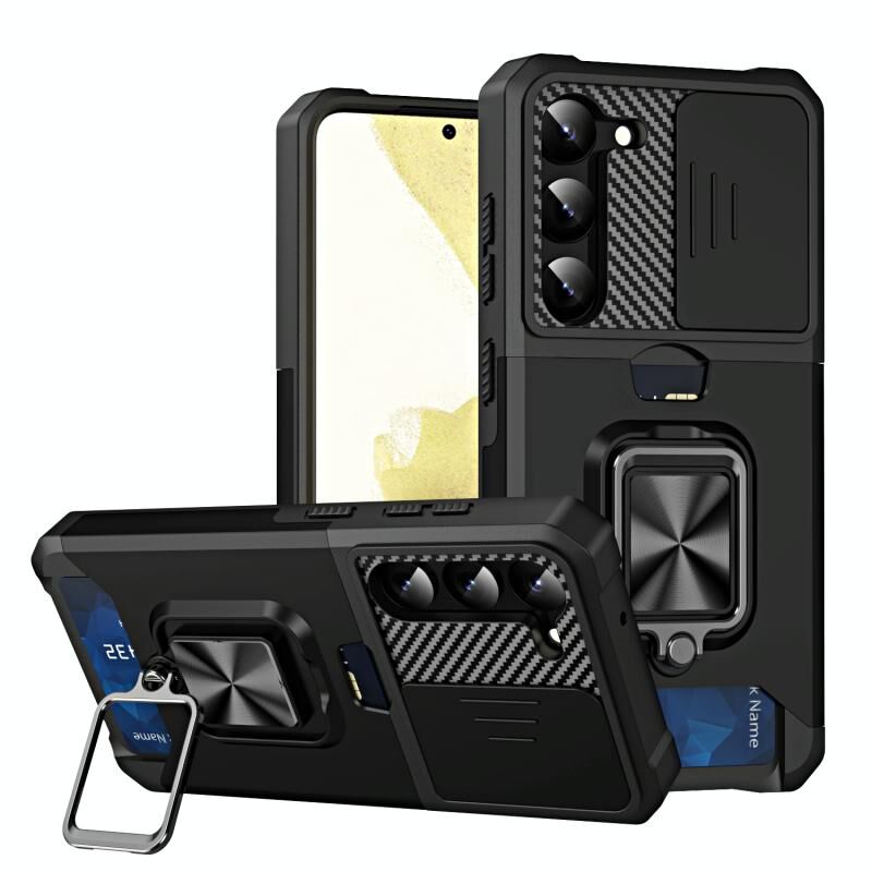Για Samsung Galaxy S23+ 5G Συρόμενη θήκη τηλεφώνου Camshield με θήκη δαχτυλιδιού και υποδοχή κάρτας (Μαύρο)