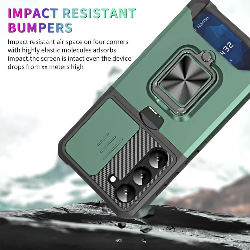 Για Samsung Galaxy S23+ 5G Συρόμενη θήκη τηλεφώνου Camshield με θήκη δαχτυλιδιού και υποδοχή κάρτας (πράσινο)