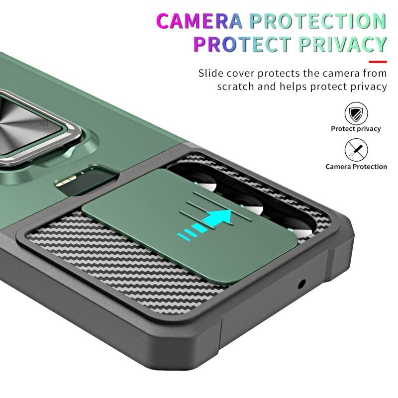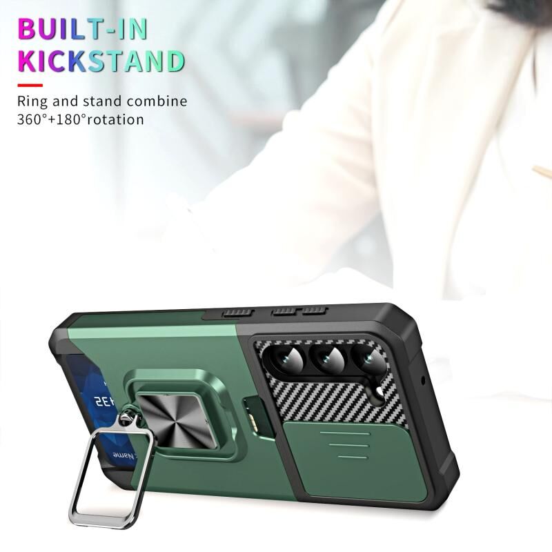 Για Samsung Galaxy S23 5G Συρόμενη θήκη τηλεφώνου Camshield με θήκη δαχτυλιδιού και υποδοχή κάρτας (πράσινο)