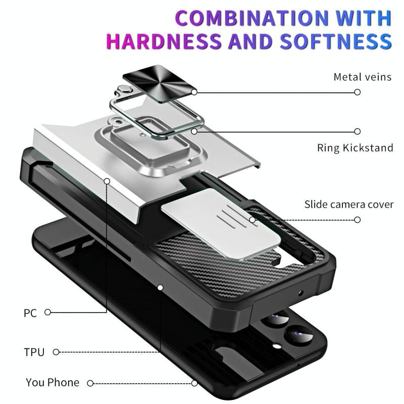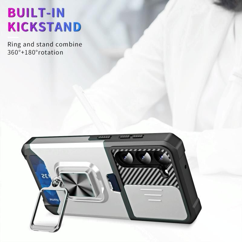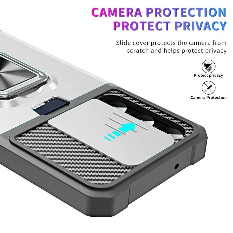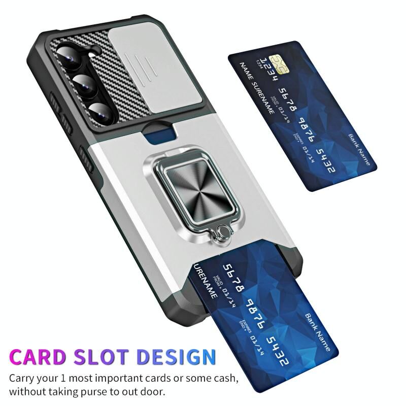 Για Samsung Galaxy S23 5G Συρόμενη θήκη τηλεφώνου Camshield με θήκη δαχτυλιδιού & υποδοχή κάρτας (Ασημί)