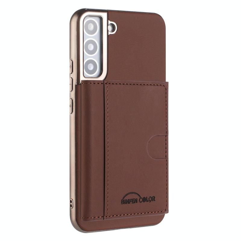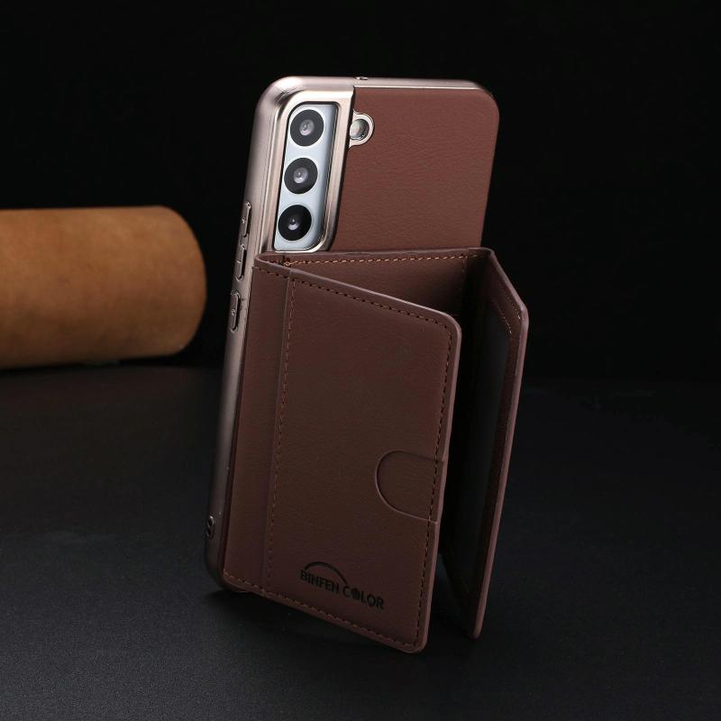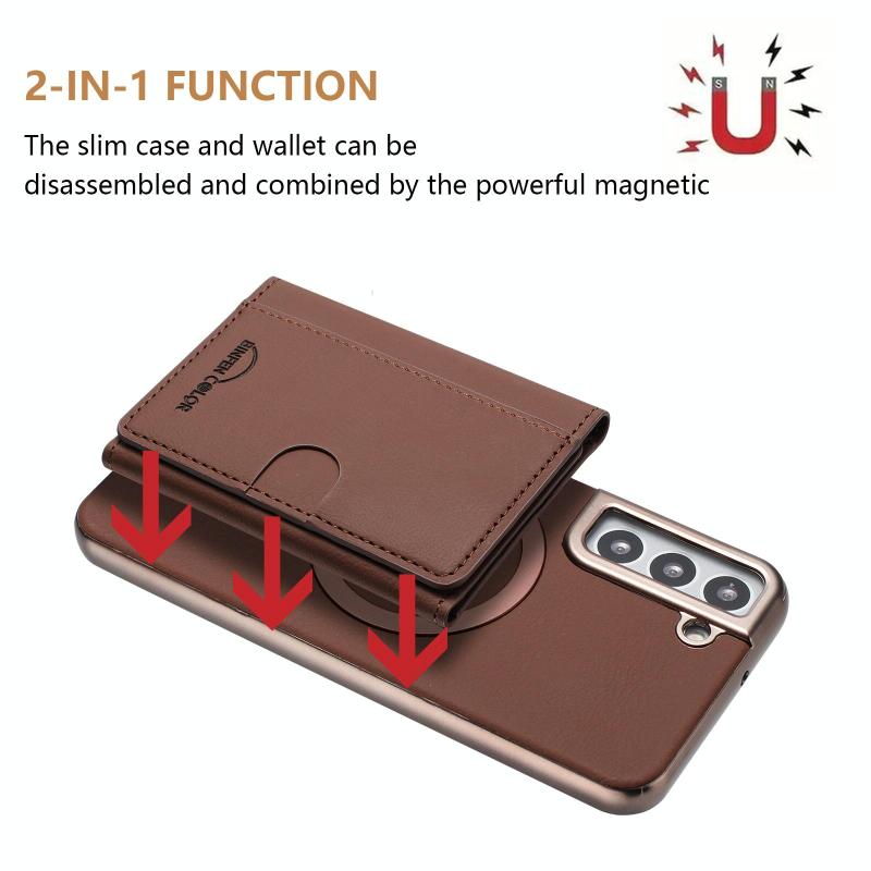 For Samsung Galaxy S23 5G Solid Color Horizontal Magnetic Card Bag RFID MagSafe Phone Case(Brown)