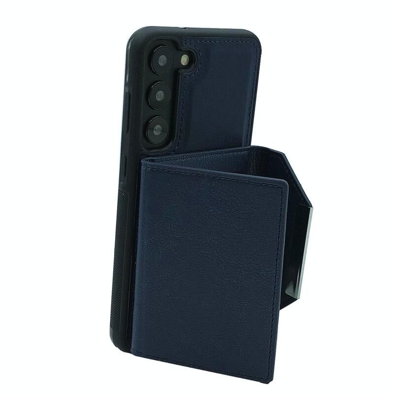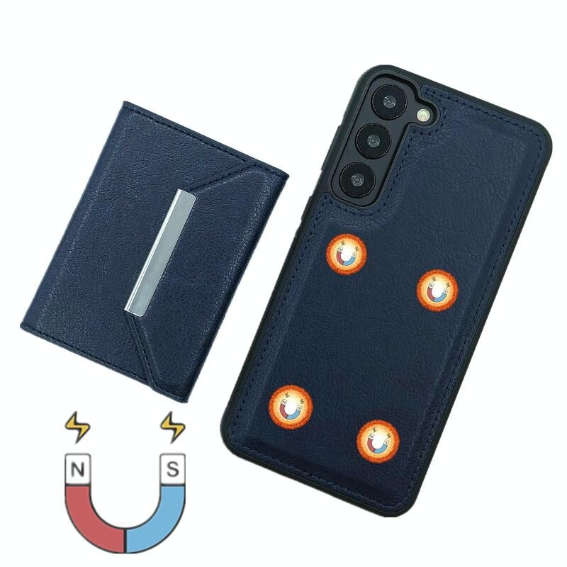 Για Samsung Galaxy S23 5G Αμιγές χρώμα μέταλλο πόρπη κάρτα υποδοχές τσάντα υπόθεση τηλεφώνου (μπλε)