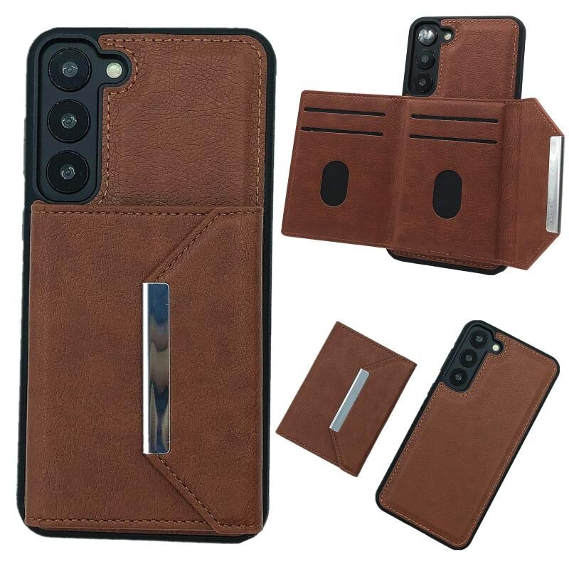 Για Samsung Galaxy S23 5G Αμιγές χρώμα μέταλλο πόρπη κάρτα υποδοχές τσάντα υπόθεση τηλεφώνου (Καφέ)