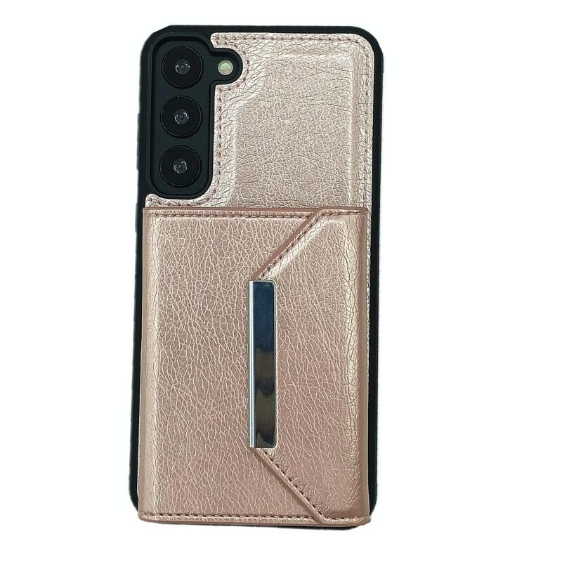 Για Samsung Galaxy S23 5G στερεό χρώμα μέταλλο πόρπη κάρτα υποδοχές τσάντα υπόθεση τηλεφώνου (Rose Gold)