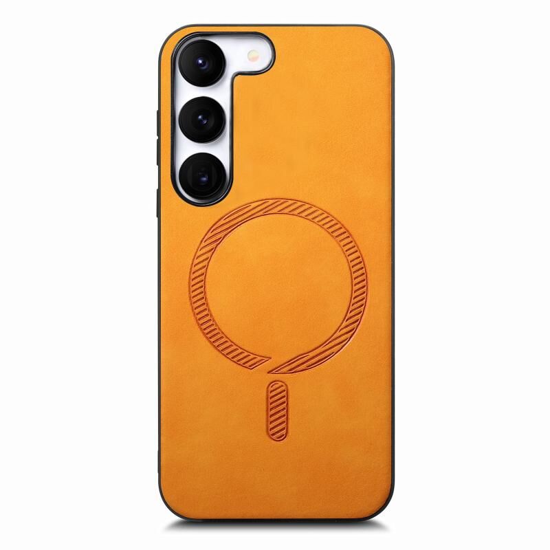 For Samsung Galaxy S23+ 5G Solid Color Retro Magsafe PU Back Cover Phone Case(Yellow)