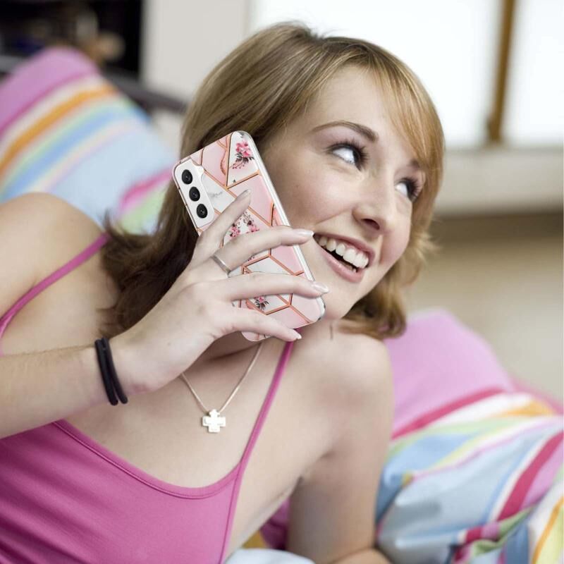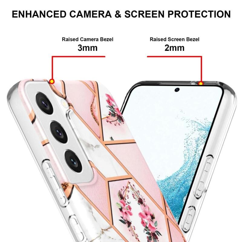 Θήκη κινητού τηλεφώνου Samsung Galaxy S23+ 5G, με σχέδιο μάρμαρου και λουλουδιών, IMD TPU (Ροζ Λουλούδι)