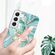 For Samsung Galaxy S23+ 5G Splicing Marble Flower IMD TPU Phone Case Ring Holder(Green)