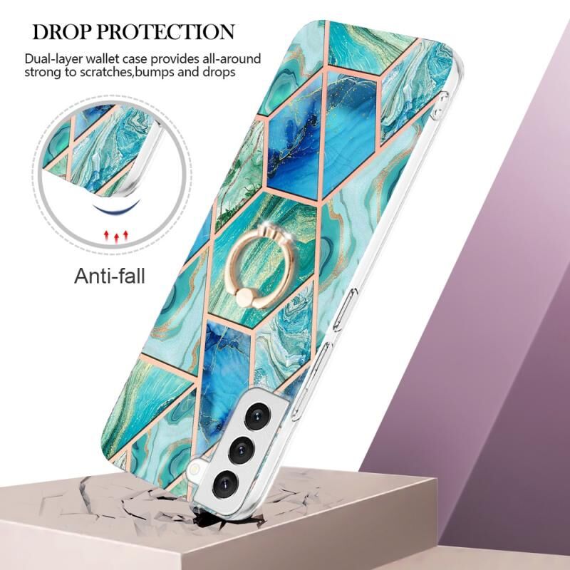 Θήκη κινητού τηλεφώνου Samsung Galaxy S23 5G, με σχέδιο μαρμάρου και λουλουδιών, IMD TPU, με δακτύλιο στήριξης (Σκούρο Μωβ)