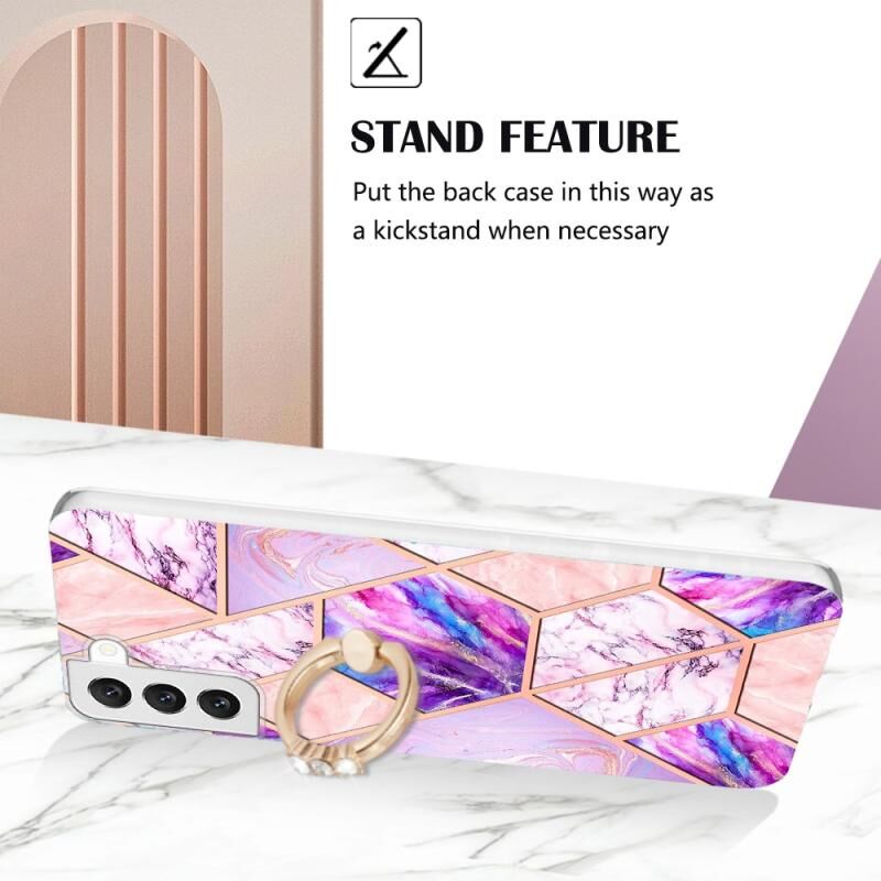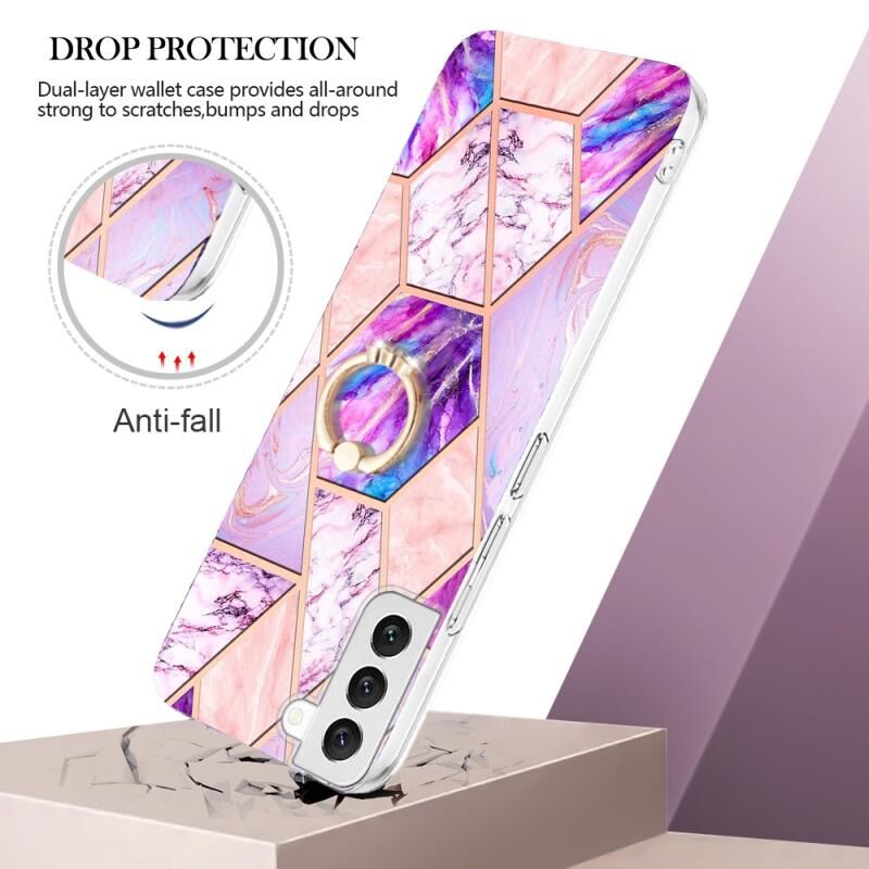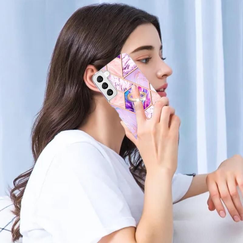 Θήκη κινητού τηλεφώνου Samsung Galaxy S23+ 5G, με σχέδιο μάρμαρου και λουλουδιών, IMD TPU, με δακτύλιο στήριξης (ανοιχτό μωβ)