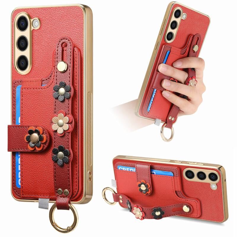 Για Samsung Galaxy S23 + 5G Στερεοσκοπικά λουλούδια Wristband κάρτα τσάντα υπόθεση τηλεφώνου (κόκκινο)