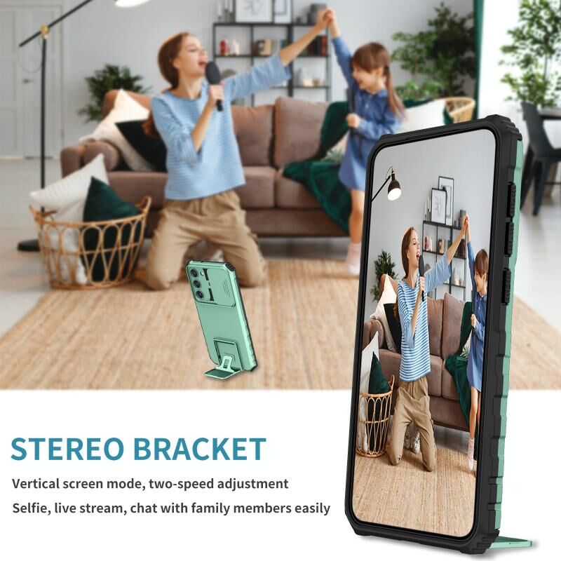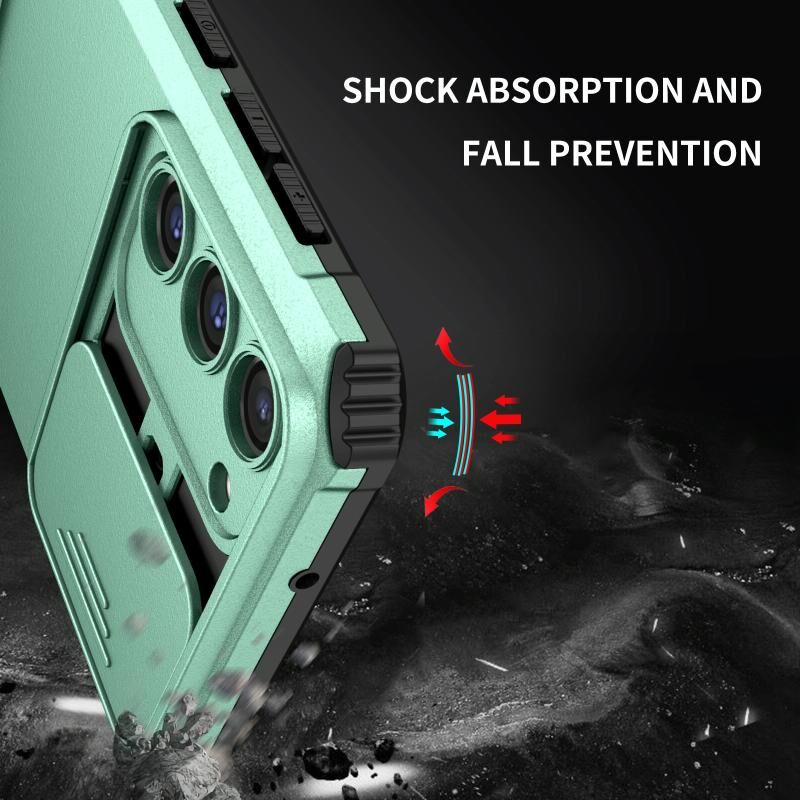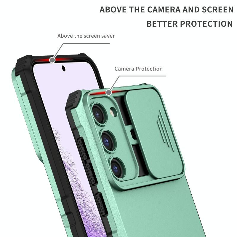 Θήκη τηλεφώνου Samsung Galaxy S23 5G με στερεοσκοπική βάση και συρόμενο προστατευτικό κάμερας (Λευκό)